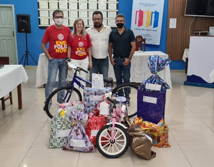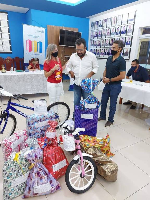 Motivados pelo espírito natalino os rotarianos do Rotary Club de Cáceres se engajaram na Campanha de Natal promovida pelos Correios adotando inúmeras cartinhas com pedidos de crianças ao Papai Noel. A primeira entrega dos presentes se deu na noite de quarta-feira, quando o Gerente da Agência dos Correios em Cáceres, José Machado Arruda e o colaborador Luciano estiveram recebendo os presentes, que serão entregues as crianças no Natal.