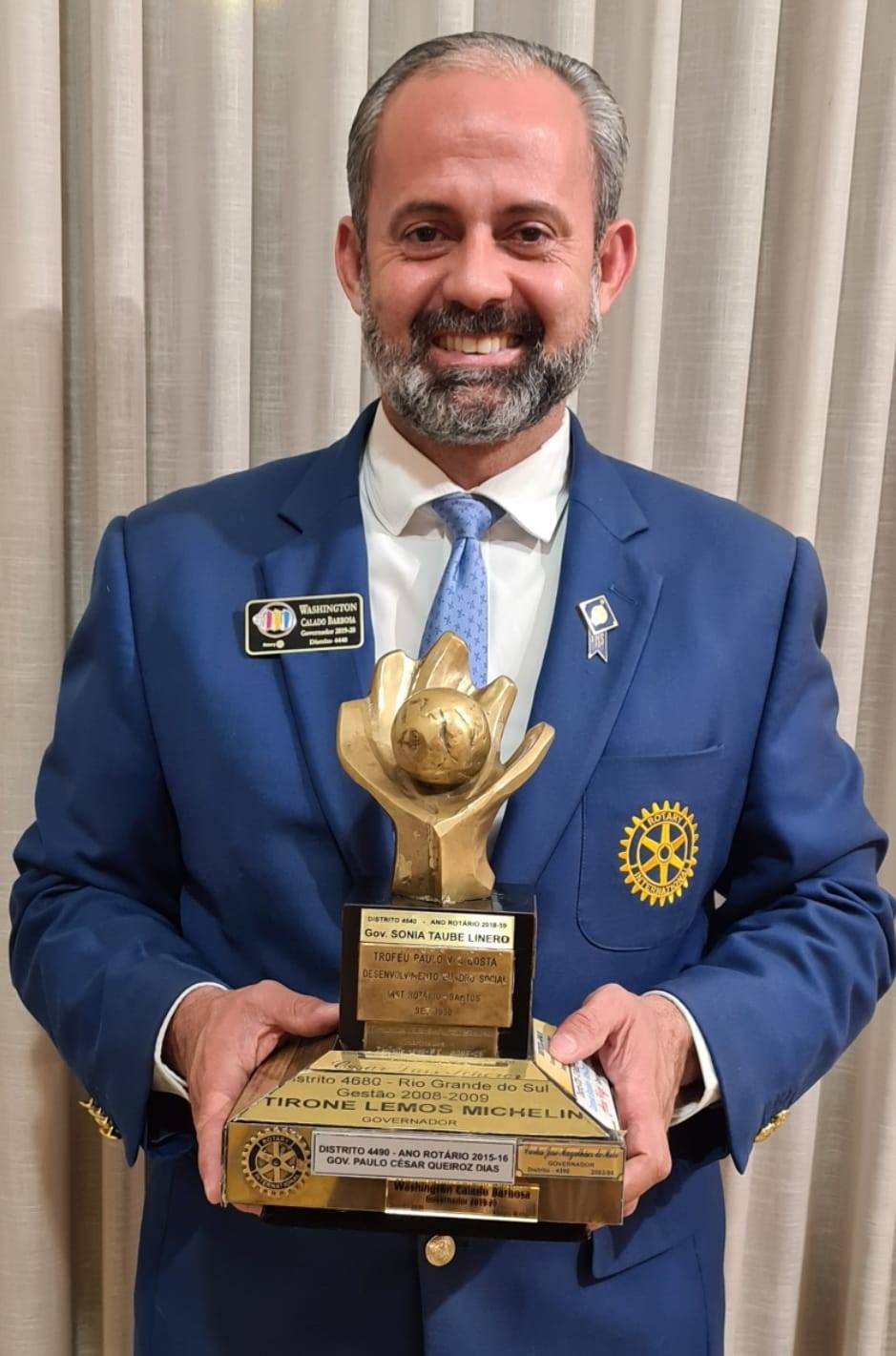 Poderíamos estender e muito esse rol de realizações às comunidades do nosso distrito, mas paramos por aqui. Porém, um dos feitos que mais o orgulha e nos orgulha, como companheiros desse distrito, são as conquistas à instituição, como as relativas ao DQA (Desenvolvimento do Quadro Associativo). E nesse particular não sobram dúvidas para quaisquer ilações que por ventura alguém, inadvertidamente, queira fazer: são tão expressivos e significativos os números que Washington apresenta, como os decorrentes de sua gestão à frente do Distrito 4440, como campeão absoluto de criação de novos 12 novos clubes e crescimento do quadro de 336 associados, com a outorga do troféu “Companheiro Paulo Viriato Corrêa da Costa”, a mais alta distinção rotária do país.