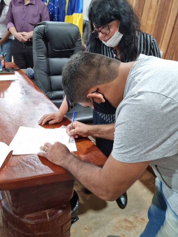 Após as falas e agradecimentos, A prefeita juntamente com o Presidente Thiago e Fernando assinaram os termos de parceria.