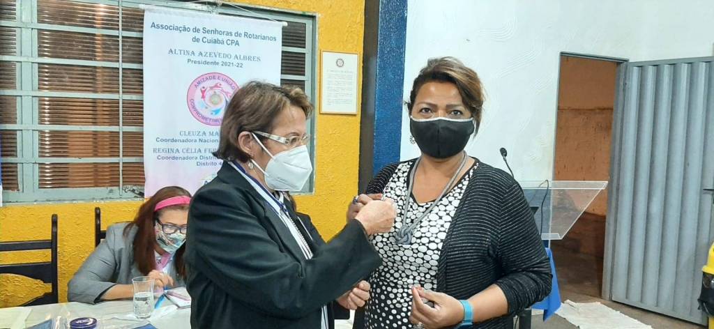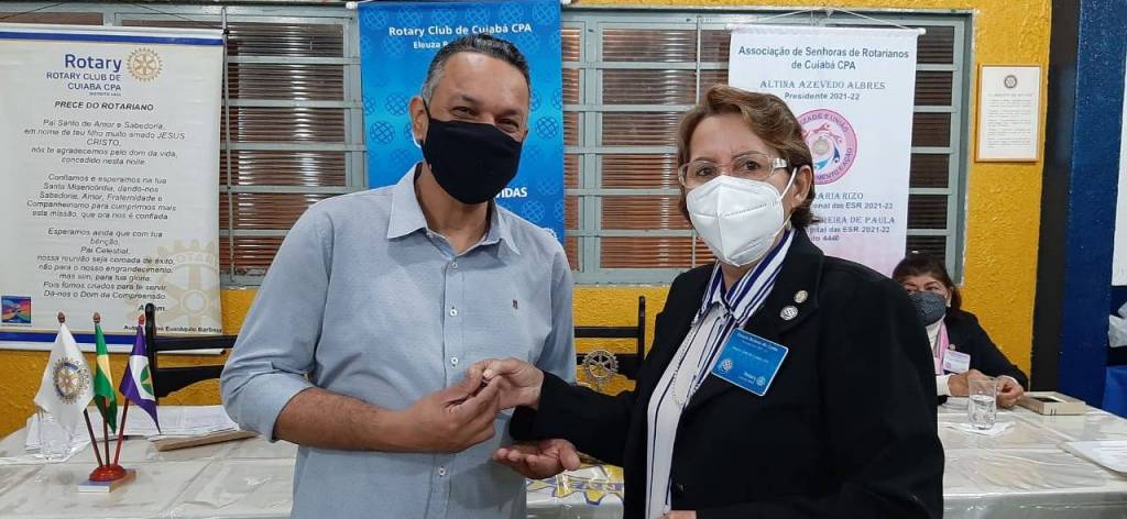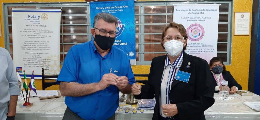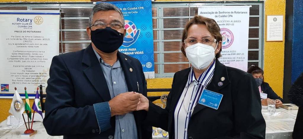 Companheiros Zozoel e Regina, Governador e Coordenadora Distrital da ASR participam da 1a. Reunião Presencial do Rotary Cuiabá CPA