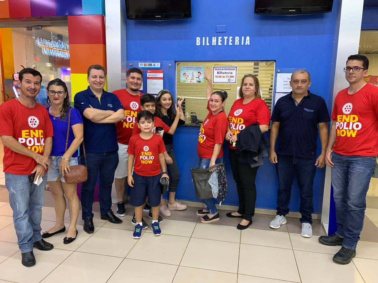 Associados do Rotary Club de Tangará da Serra foram ao cinema prestigiar filme de combate a poliomielite exibido todos os dias do mês de outubro de 2019 Cine Shopping de Tangará da Serra.
