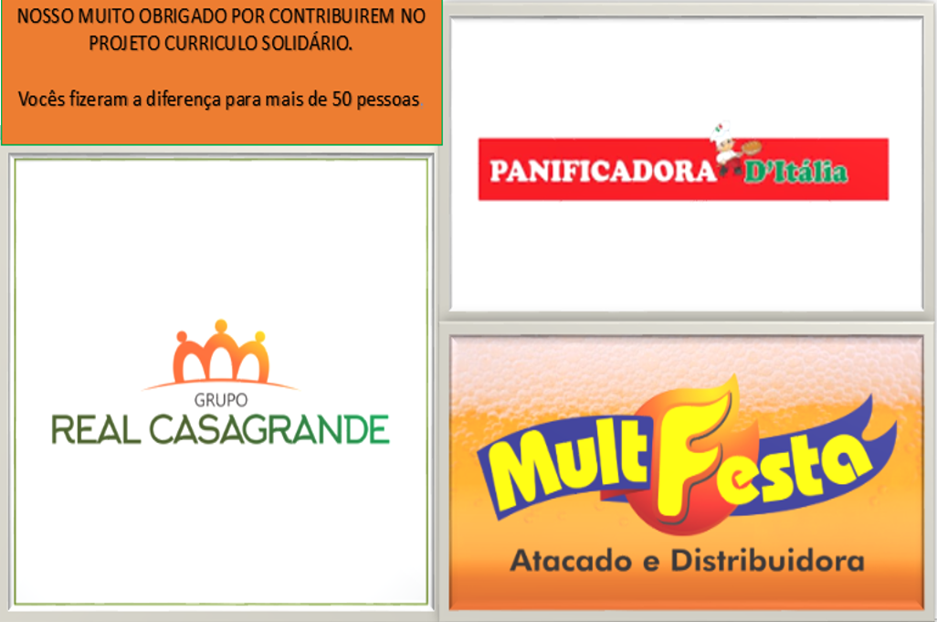 Agradecimentos sinceros ao Supermercado Real Mult Festa Panificadora e Confeitaria D'italia