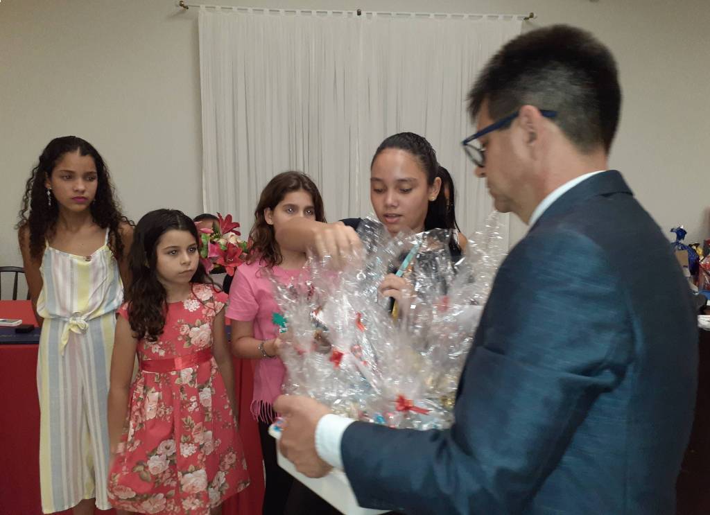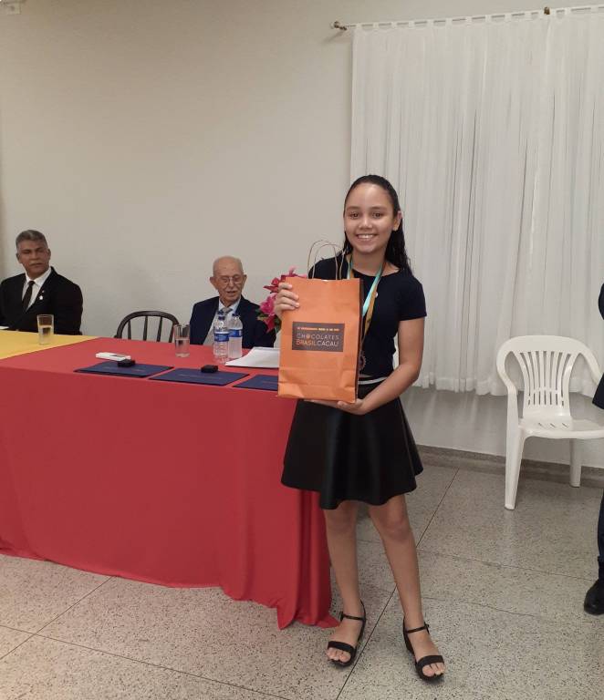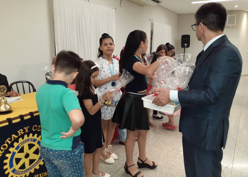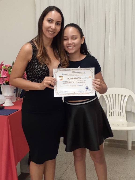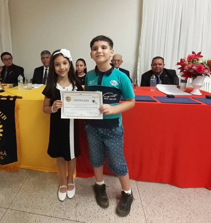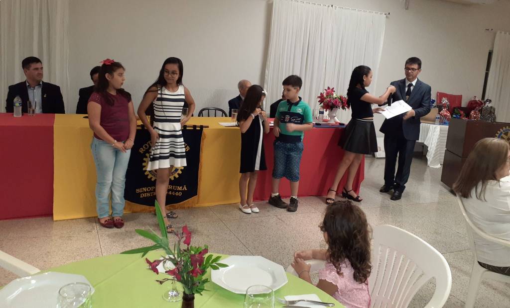 Juntamente com o seu Clube Padrinho Rotary Club de Sinop Tarumã, no dia 14/12/2019 o Rota Kids de Sinop Tarumã participou da festiva de confraternização, que foi marcada por uma cerimônia de posse de novos companheirinhos, a Presidente Isadora de Castro Medina declarou empossadas Valentina Barbosa Avancini Moraes e Julia Emanuelly dos Santos Silva no clube de crianças, que no próximo ano estará cooperando com os projetos. Na oportunidade o Rota Kids de Sinop Tarumã homenageou os parceiros que colaboraram para que o Natal do Kids edição 2019 acontecesse, também não poderiam deixar de prestarem uma linda homenagem às mães e pais que são fiéis apoiadores do clube. Após as homenagens, em um momento de grande emoção para todos os presentes, foi anunciado a Kidiana vencedora do troféu que tem por nome a eterna e inesquecível companheira e idealizadora do Rota Kids, Troféu Yeda Reis Carvalho, premiação do 1º Concurso de Redações Rotárias do Rota Kids que teve sua primeira edição em 2019, o concurso tinha por obejtivo avaliar as melhores redações escritas pelos kidianos do primeiro ao terceiro lugar. Ficou com o Troféu Yeda Reis Carvalho a Kidiana Isadora Angeli que foi entregue pelo Companheiro EGD Sr. Ascanio Baptista Carvalho, o segundo lugar com medalha de prata a kidiana Sophia Moraes Carvalho e terceiro lugar com medalha de bronze a kidiana Isadora de Castro Medina.