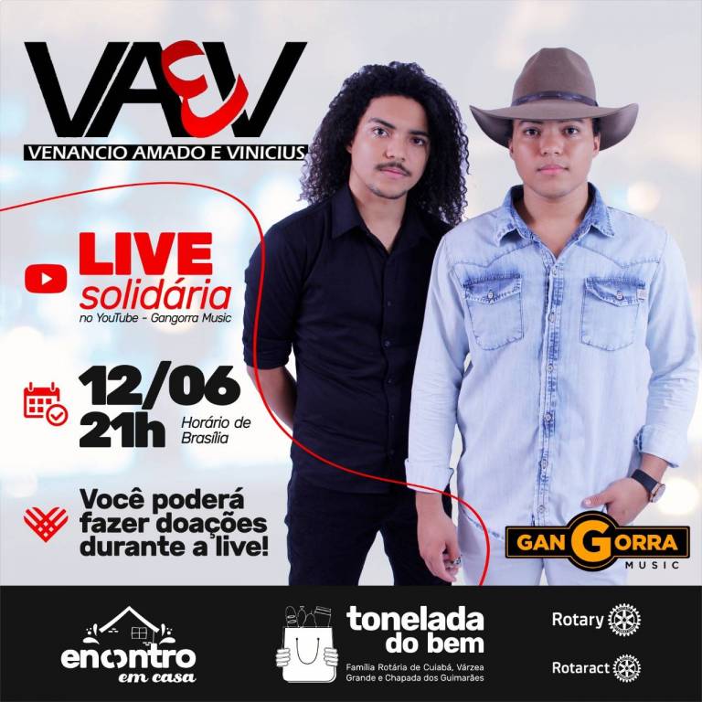 – Live Show Sertaneja Venâncio Amado e Vinícius (12/06): Essa live foi um sucesso! Conseguimos a doação de 1000kg de feijão, 540kg de arroz e 120 litros de água sanitária. Todas essas doações foram destinadas a ACAMIS, uma instituição que oferece refeições prontas para moradores de bairros de Várzea Grande.