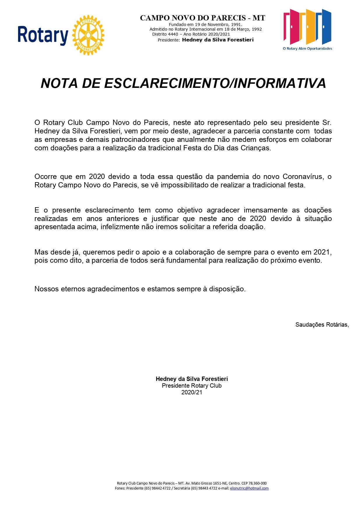 NOTA DE ESCLARECIMENTO ROTARY CLUB CAMPO NOVO DO PARECIS